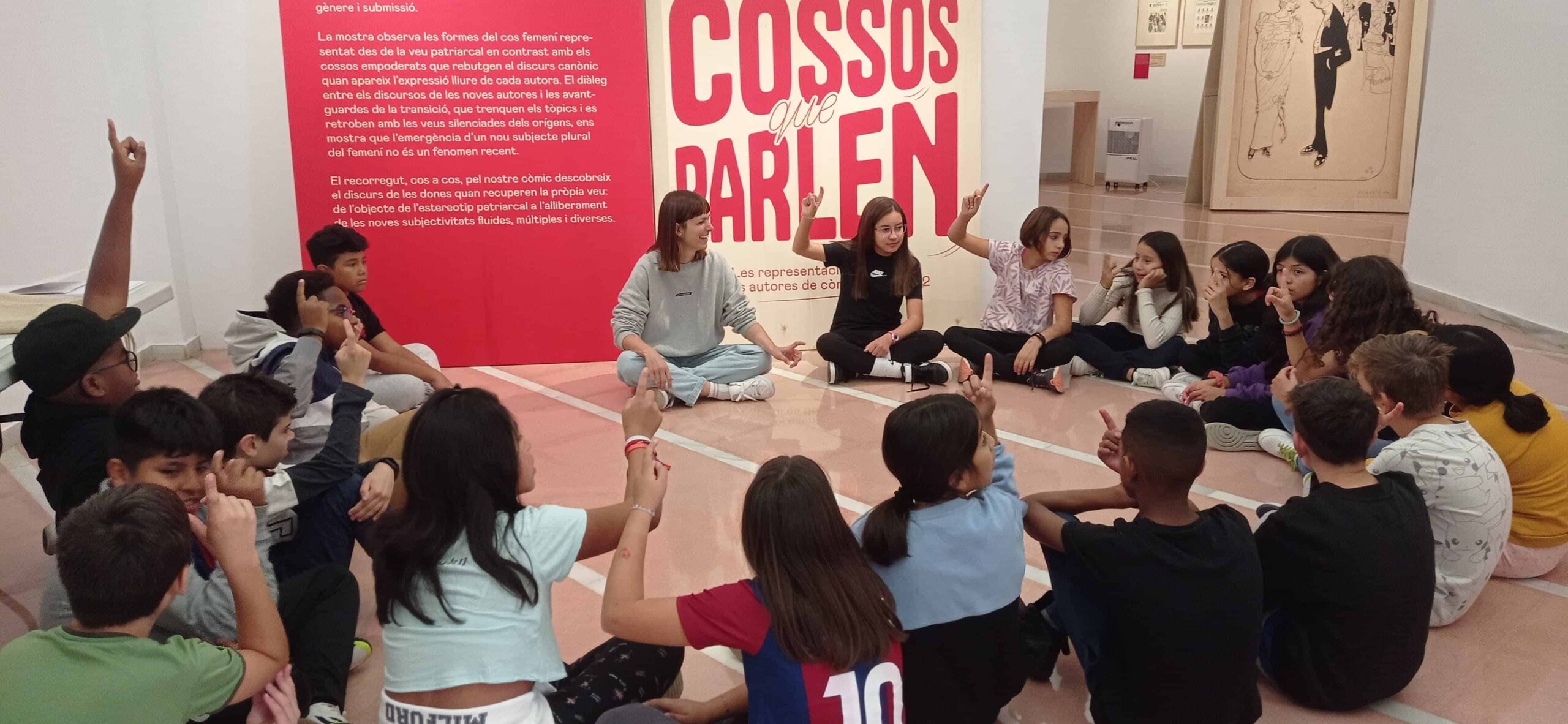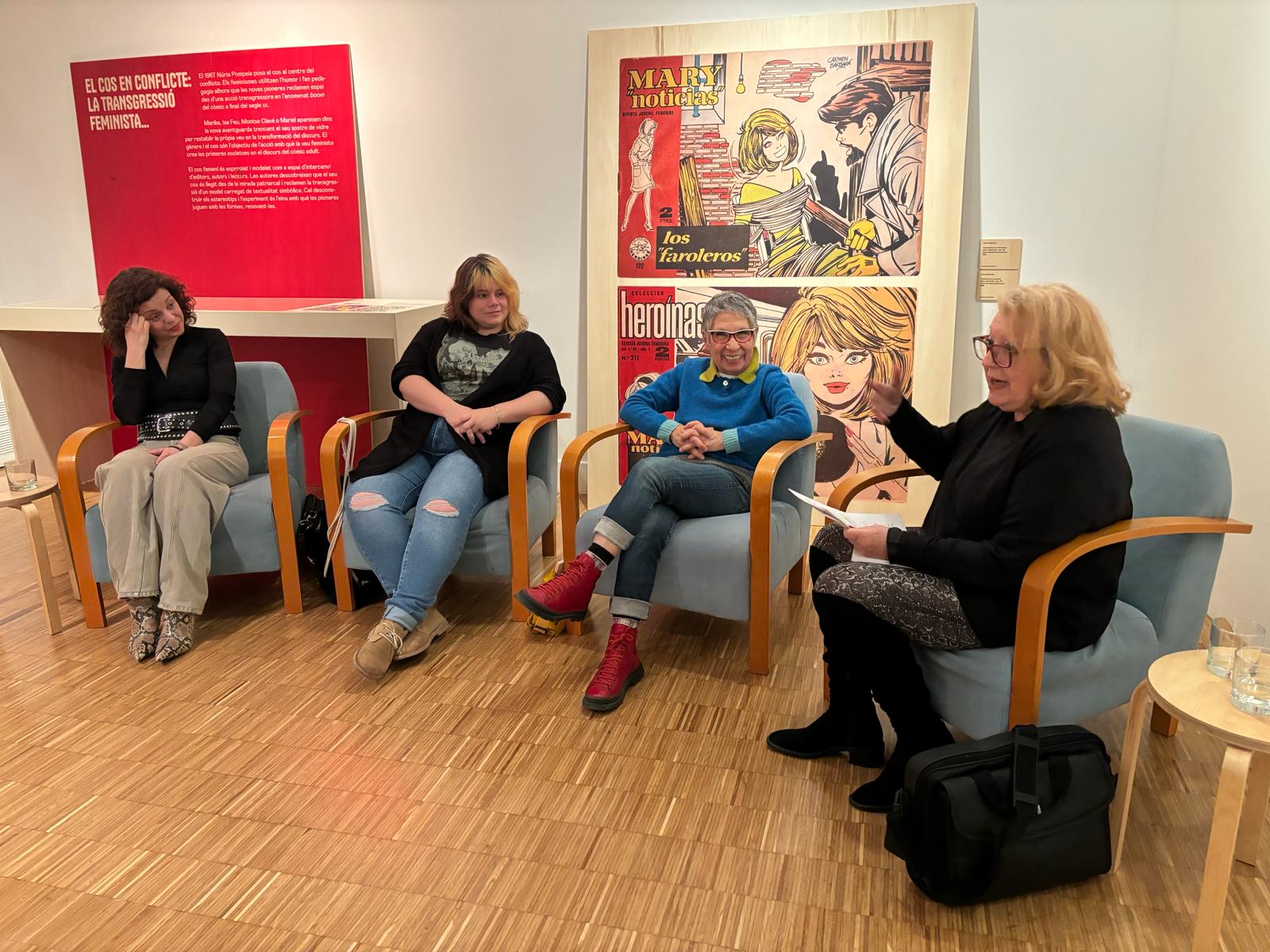 El sisè espai, dedicat a la reflexió final, inclou els treballs digitals d’autores emergents que es construeixen com a subjectes en llibertat i posen la mirada en la pluralitat. Cada àmbit exposa dibuixos i il·lustracions originals que es complementen amb la documentació que s’exhibeix en les vitrines.