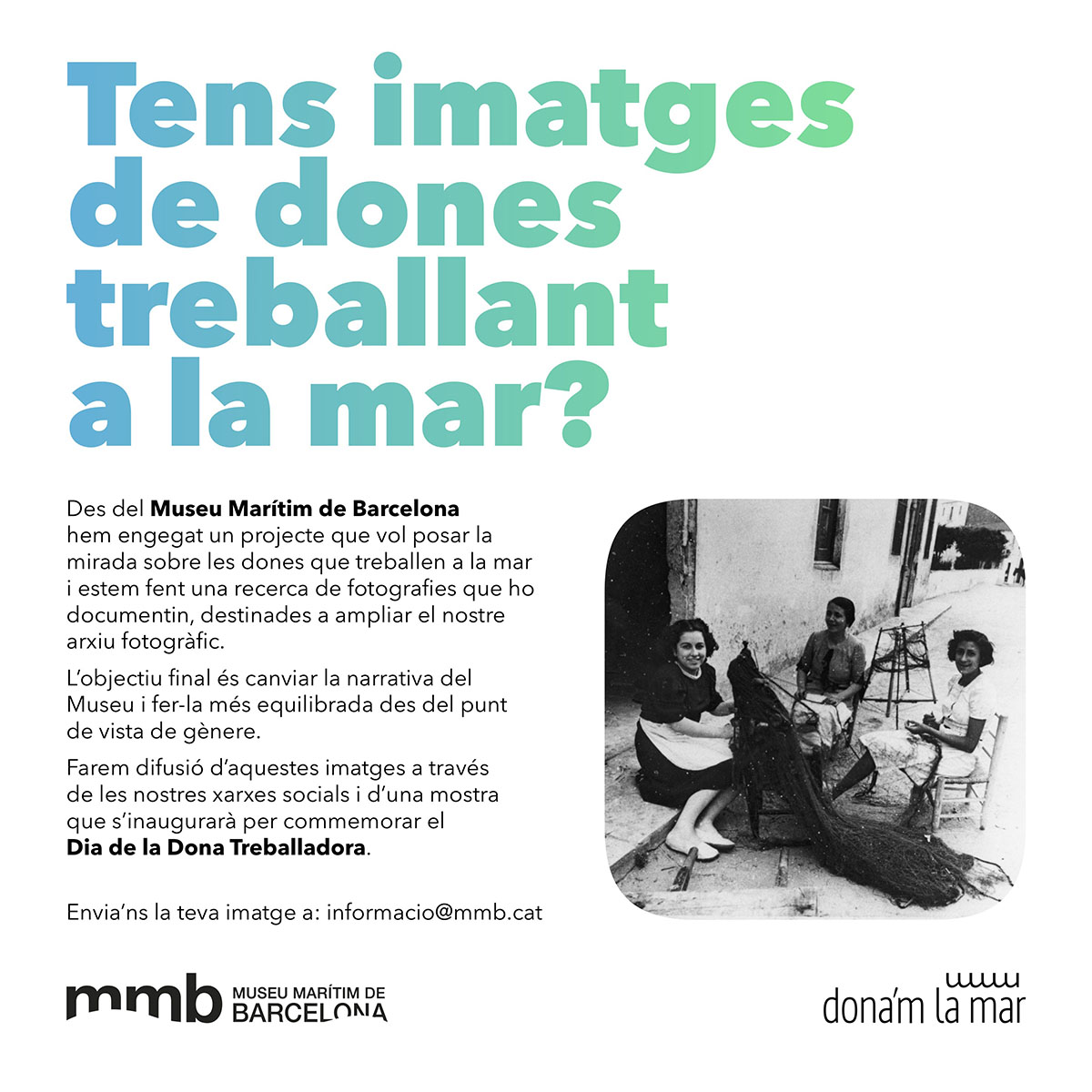 DONA’M LA MAR és un projecte ambiciós que té com a com a objectiu final reorientar la narrativa del museu des d’un punt de vista més igualitari. El projecte comença amb una recerca, estructurada en cinc grups de discussió integrats per dones de reconeguda expertesa, destinada a assenyalar-nos els principals reptes que té la dona que avui dia es fa a la mar, i a entendre com s’explica la mar –què es visibilitza i què s’invisibilitza-. La recerca ha impulsat un ampli ventall d’activitats de tota mena encaminat a aconseguir l’objectiu final perseguit: una crida per abastir l’arxiu fotogràfic d’imatges de dones treballant a la mar, una exposició, instal·lació de fulls de sala o la revisió de totes les activitats de programa pedagògic, entre altres.
