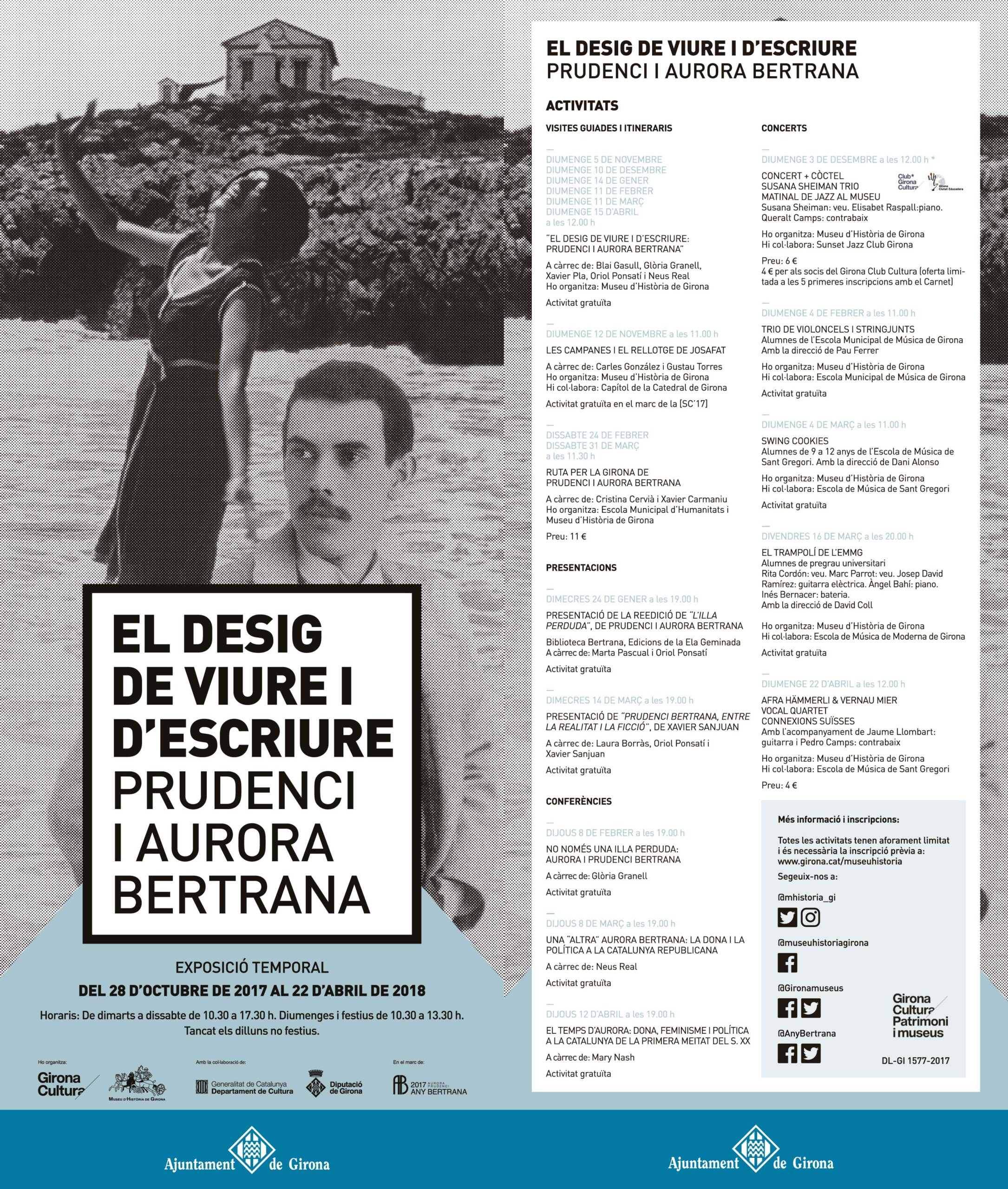 Un dels objectius del MHG és reivindicar les vides i obres de personalitats vinuclades a la història i cultura de la nostra ciutat, que esdevenen tant una carta de presentació de Girona al món com una projecció de quina és la visió del món des de Girona. Prudenci i Aurora Bertrana signifiquen tant per Girona com per Catalunya, una etapa plena de cultura, d’activitat intel.lectual i artística, de moviment polític social, i d’història intensa i apassionant. A través dels detalls diversos expositius i explicatius, sobre la seva trajectòria vital i professional, la mostra proposa una mirada diferent a la Catalunya i la Girona de l’inici del s. XX i fins als anys 70. L’exposició pretén recuperar i promoure encara més la figura de Prudenci tant com difondre i restaurar la figura d’Aurora, encara massa desconeguda.