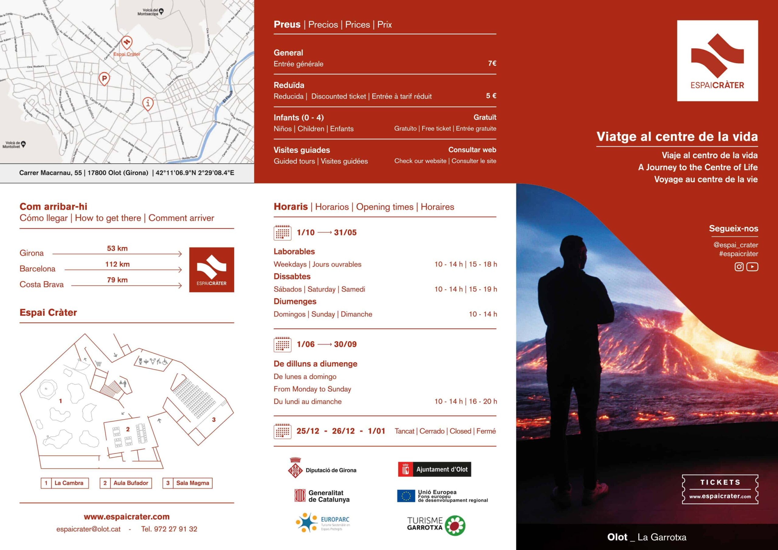 Espai Cràter és el centre de referència a Catalunya en volcans, ciència i societat. Està situat a Olot (Garrotxa), i compta amb una innovadora i interactiva exposició sobre vulcanologia i geografia humana. El concepte arquitectònic, l’exposició i el pla estratègic s’han elaborat de forma participativa i en vinculació amb els agents del territori. Tot plegat per crear un discurs i una nova narrativa a l’entorn dels volcans de la Garrotxa i del món, i reflexionar sobre el paper de la societat en un context climàtic, social i econòmic complex. L’exposició ha estat comissariada pel prestigiós vulcanòleg i director de Geociències Barcelona el Dr. Joan Martí Molist, executada per Indissoluble, i dirigida pel director del centre Xevi Collell. L’edifici és obra de Toni Casamor i Anna Codina i s’ha dissenyat perquè formi part de l’experiència: està semisoterrat i dins del volcà del Puig del Roser. A més, d’acord amb la filosofia del projecte, utilitza energia geotèrmia. Espai Cràter compta amb una programació amb diversitat de propostes, formes de participació i llenguatges per arribar a tota la comunitat.