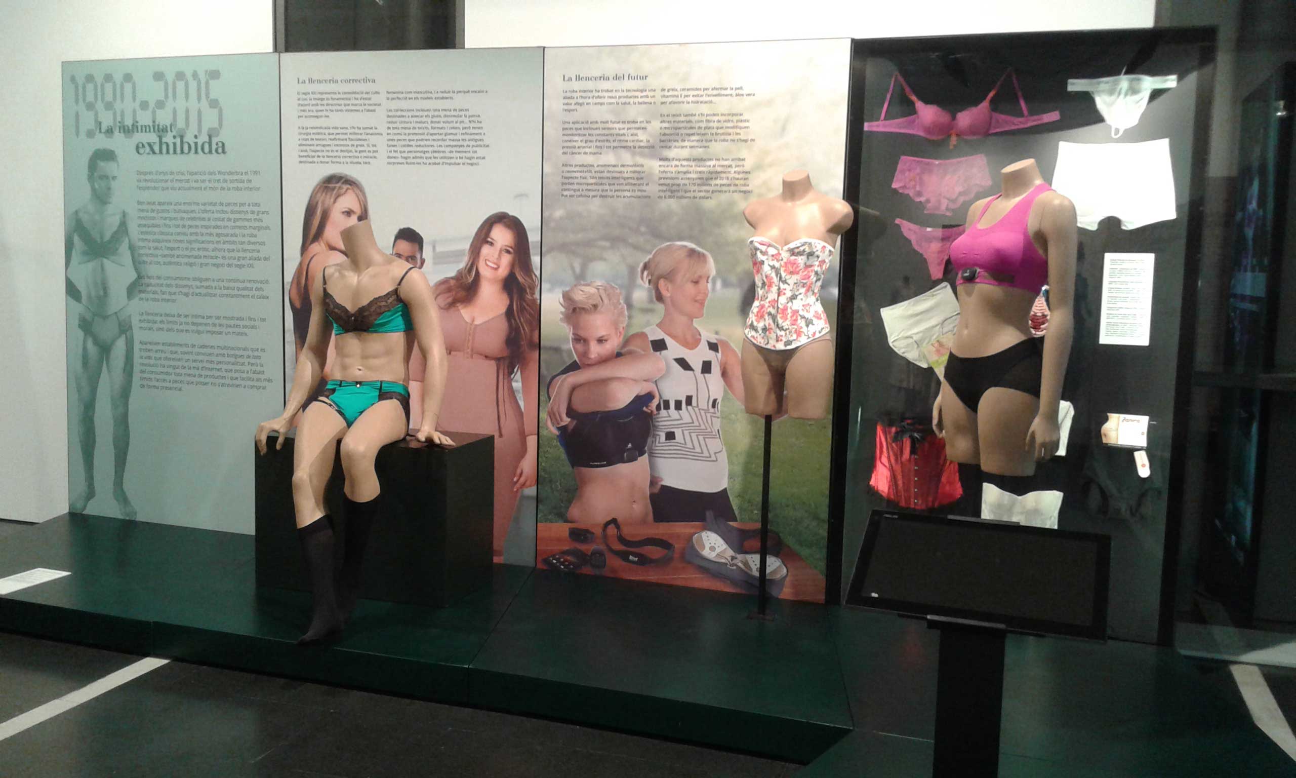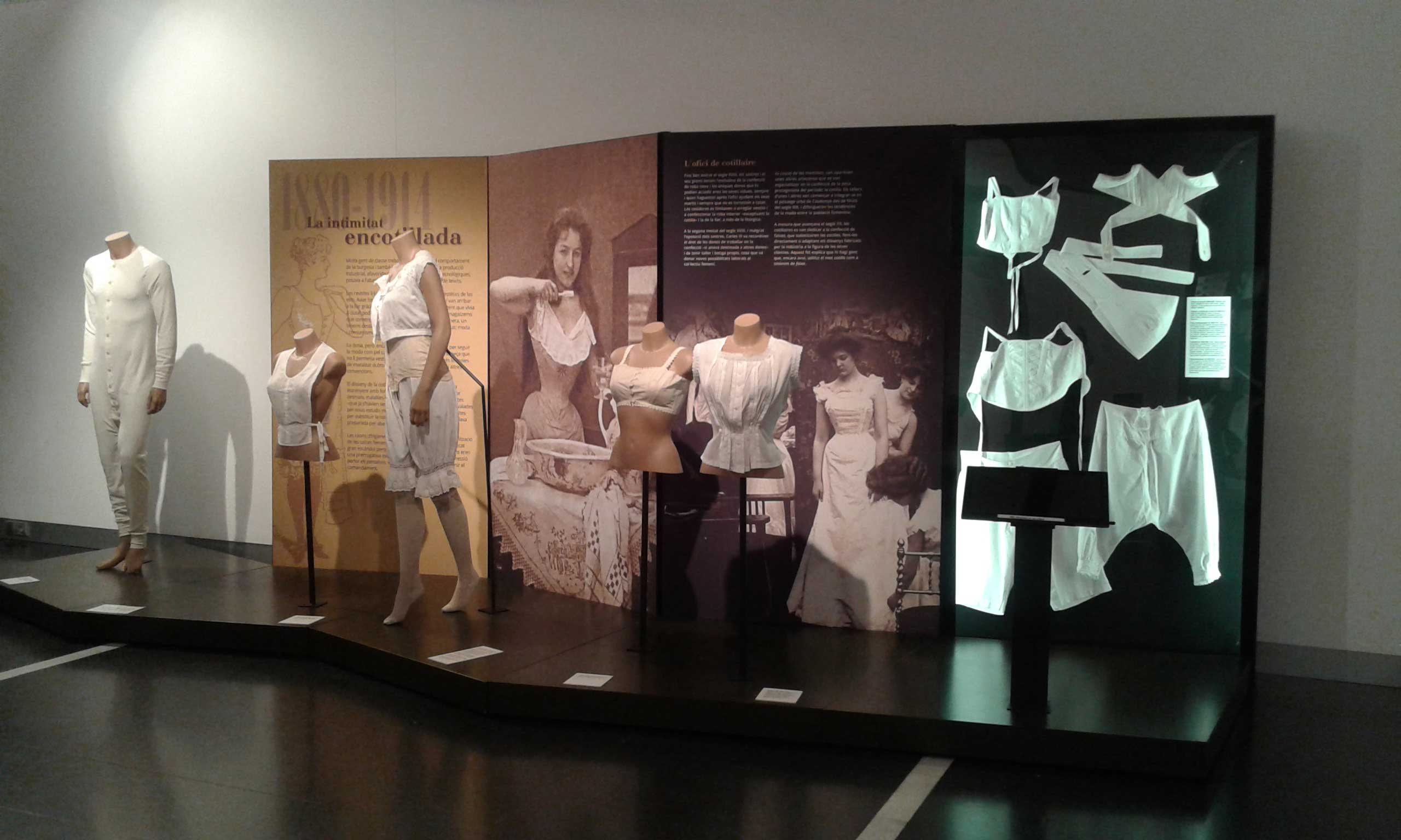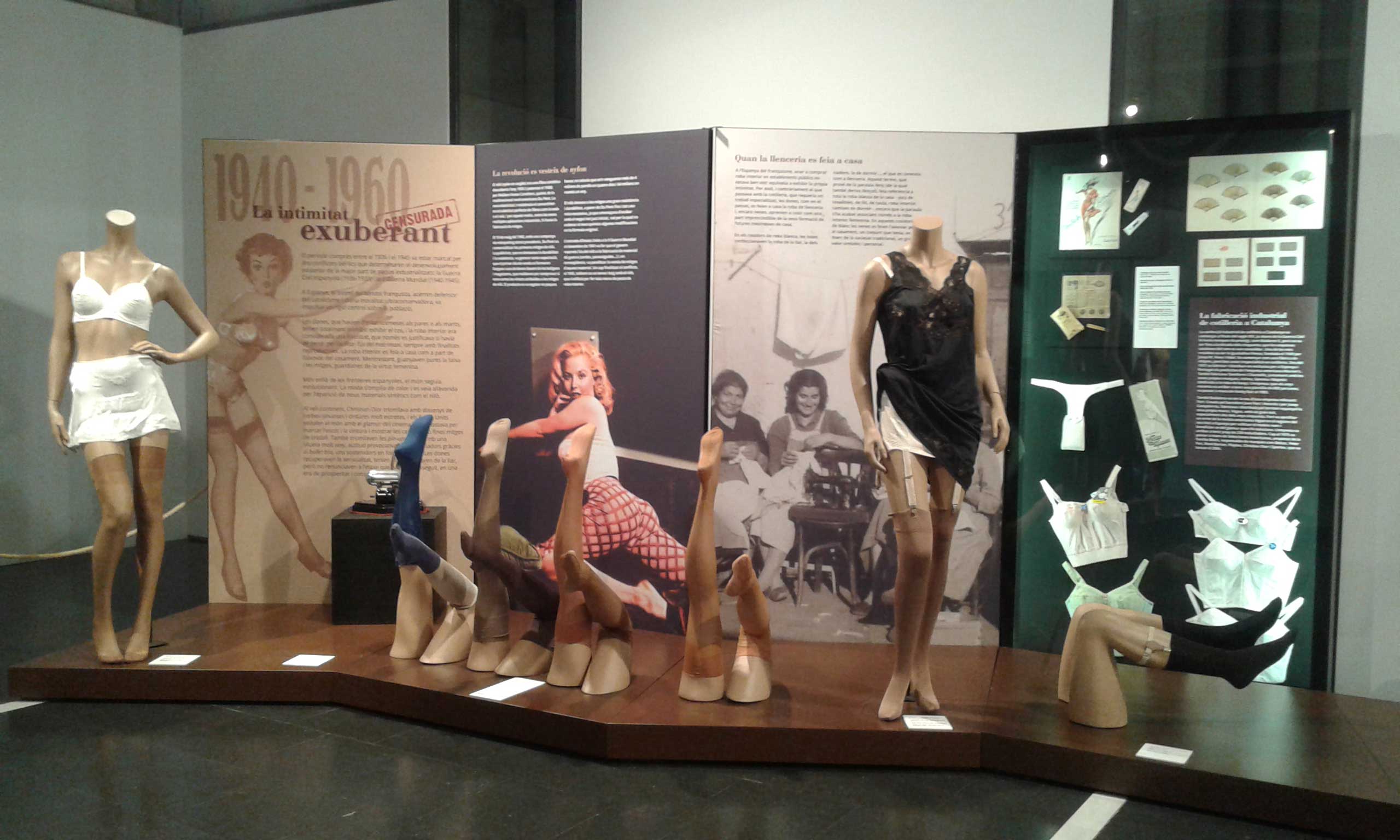 Aquesta exposició reuneix peces de roba interior des del segle XIX fins a l’actualitat. Tot fent un viatge de 200 anys on l’estètica, els canons de bellesa, els avenços tecnològics són tractats a partir de la roba íntima. Els objectes que es poden contemplar són sobretot de peces representatives de les classes populars, encara que també recull algun element excepcional, en tots els casos gràcies a la contribució de museus i particulars.