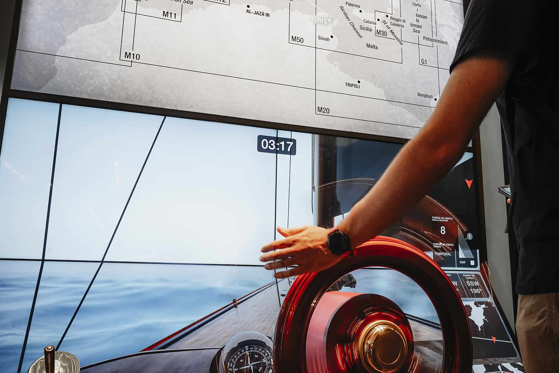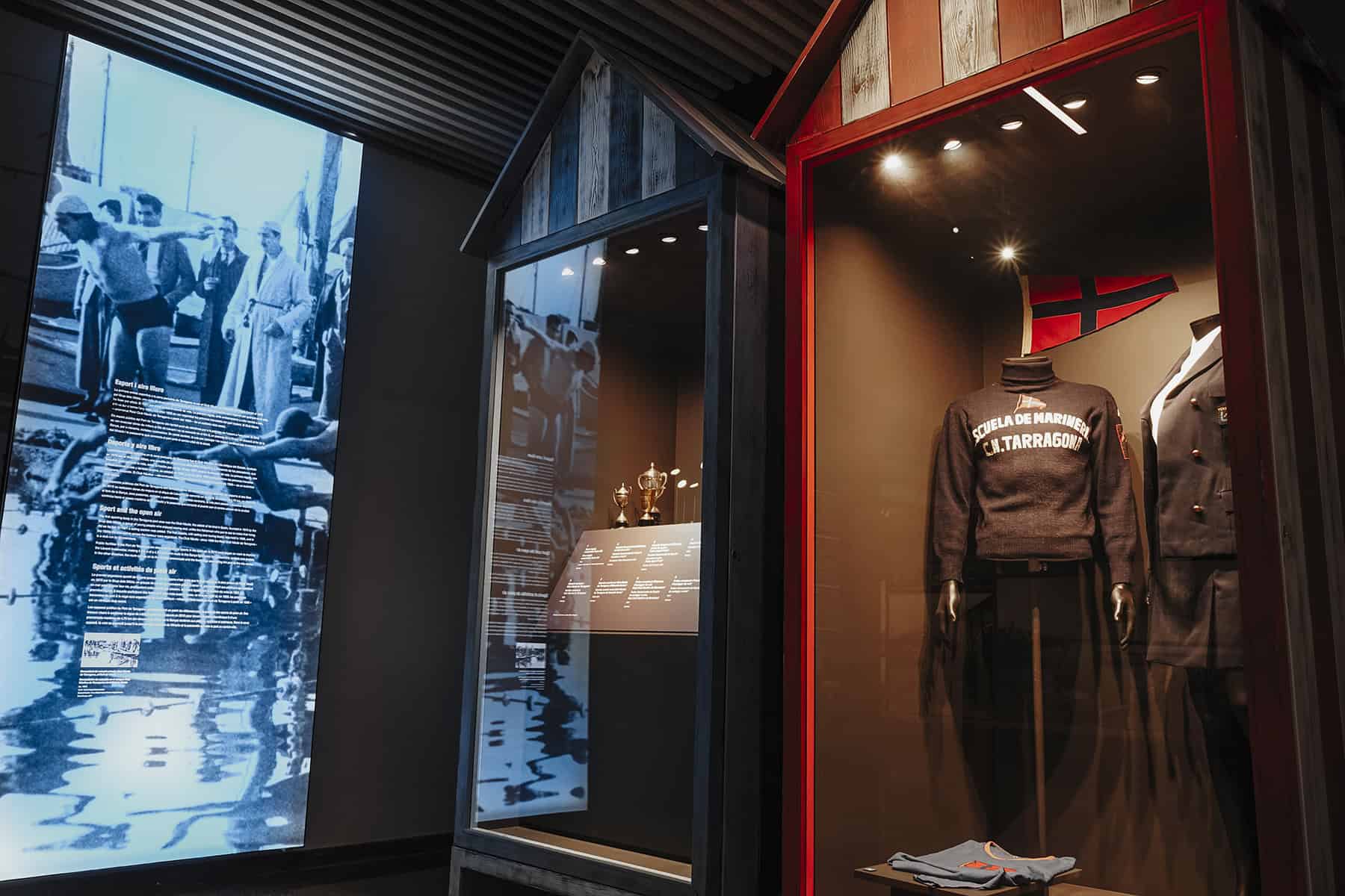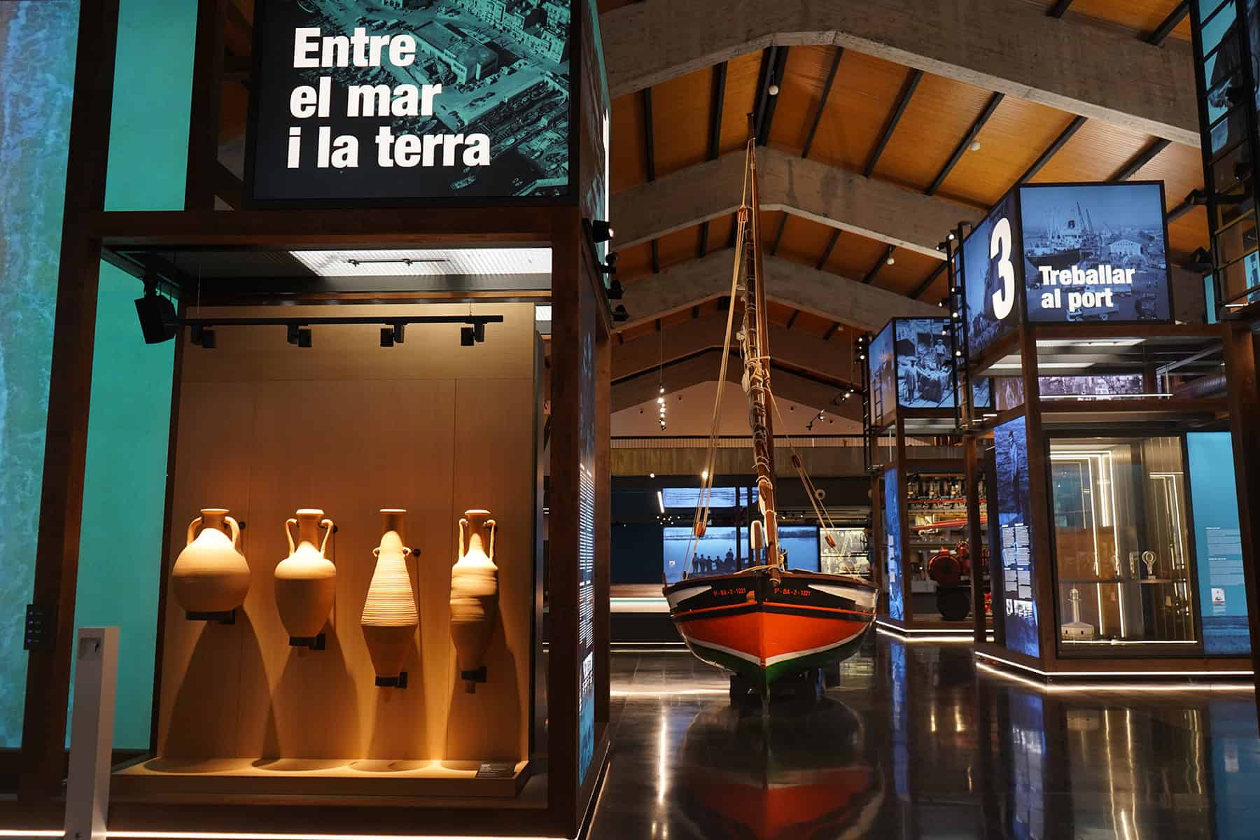 Una exposició pensada com a experiència, amb elements interactius i immersius. La naturalesa mateixa d’alguns objectes ja ens marca la direcció. Plantar-se davant d’un vaixell de grans dimensions, poder tocar-lo, és en si una experiència inoblidable. A partir d’aquí, s’han disposat una sèrie de recursos per transmetre el coneixement d’una manera vivencial. Podem governar un veler enmig del mediterrani, viure una jornada de pesca des de la mateixa embarcació, en primera persona, o conèixer el funcionament del port químic a través d’una experiència interactiva. Totes aquestes experiències integrades en un edifici portuari, antic magatzem de refugi de mercaderies, rehabilitat i història viva del Port de Tarragona.