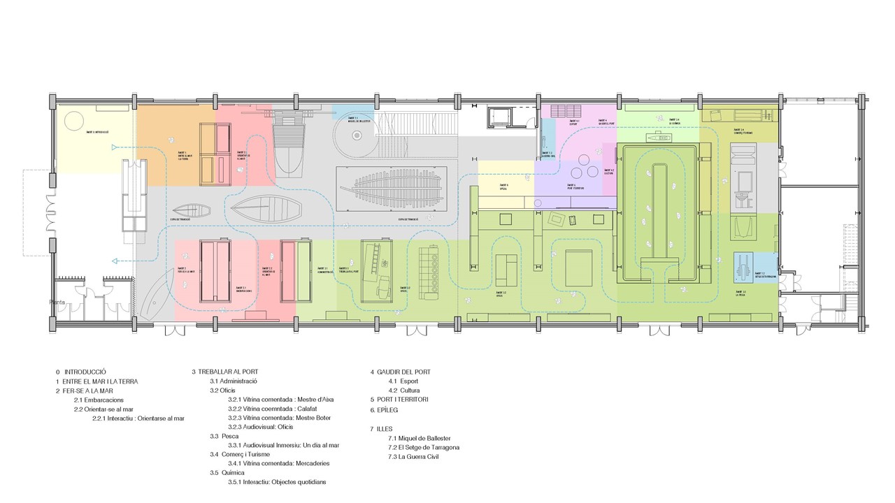 Tot gira al voltant dels objectes i s’ha concebut l’espai pensant en el seu confort. Aquests s’han de trobar en una ubicació còmoda, que els permeti habitar el museu d’una manera relaxada, sense entrar en conflicte entre si, ni amb l’espai. En aquest cas, a més, els objectes no compleixen només una funció en tant que contingut, sinó que esdevenen un valuós element escenogràfic. En el Nou Museu del Port de Tarragona tothom ha de poder trobar-hi resposta, des del públic més iniciat fins al més neòfit. Per aquest motiu plantegem una exposició en diferents capes de lectura, oferint molta autonomia al visitant alhora de decantar-se per un tipus de recurs o un altre.