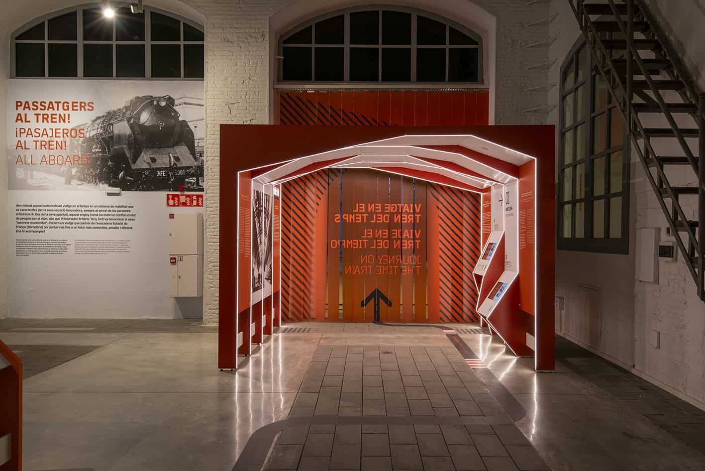 Un itinerari que comença amb el naixement i l’expansió del ferrocarril a Catalunya, enfocant especialment la implantació de la línia de Barcelona a Vilanova i les seves conseqüències a la vida de la ciutat mediterrània; continua amb la petjada i el canvi que el ferrocarril ha deixat a la nostra vida en menys de dos-cents anys. En aquest recorregut també s’aborden aspectes tan significatius com la unificació de la mesura del temps, el seu rastre en les arts plàstiques, la complexitat del sistema i els professionals amb coneixement i experiència en diferents oficis. o la seva perenne capacitat d’innovació.