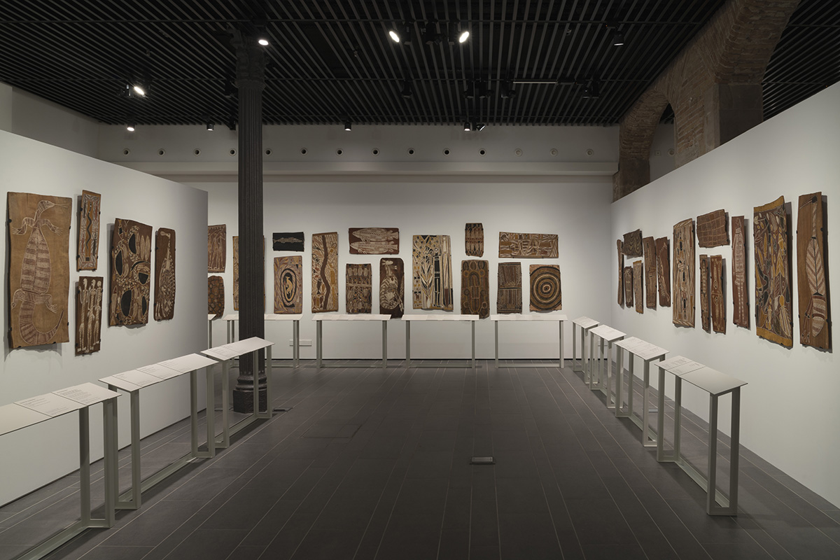 L’exposició, comissariada per Estela Ocampo, dona a conèixer una àmplia selecció de les inèdites col·leccions de pintura sobre escorça aborigen australiana dels anys 60 i 70 que es conserven al museu (pròpia i de la Fundació Folch), unes de les millors d’Europa.
