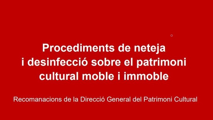 Procediments de neteja i desinfecció sobre el patrimoni cultural moble i immoble Recomanacions de la Direcció General del Patrimoni Cultural