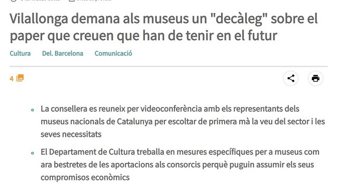 Vilallonga demana als museus un “decàleg” sobre el paper que creuen que han de tenir en el futur